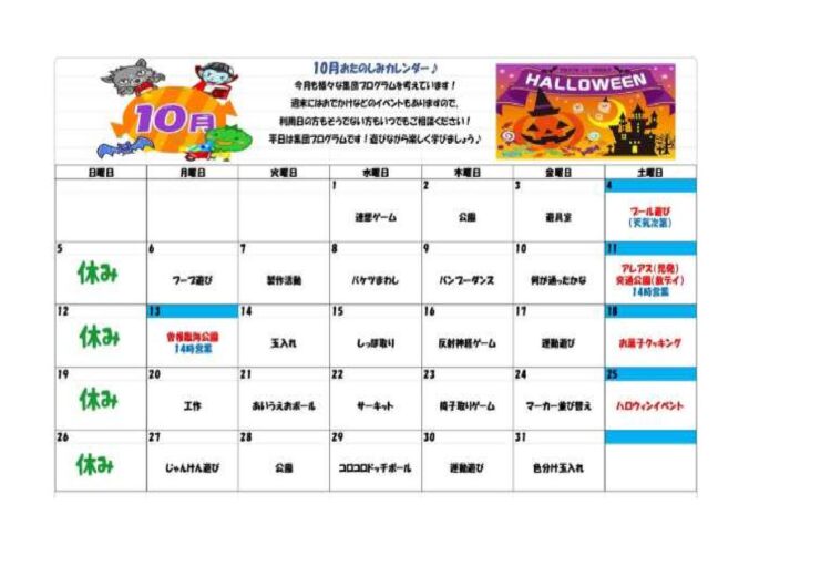 ※一日の流れの活動内容、送迎時間は目安となっております。